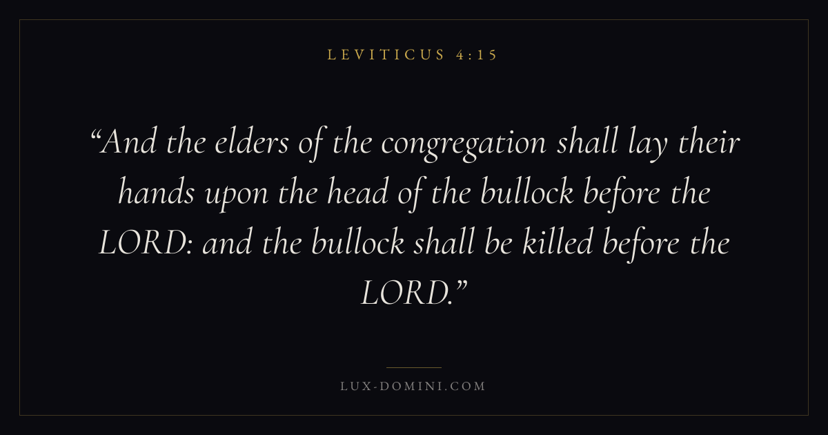 And the elders of the congregation shall lay their hands upon the head of the bullock before the LORD: and the bullock shall be killed before the LORD.