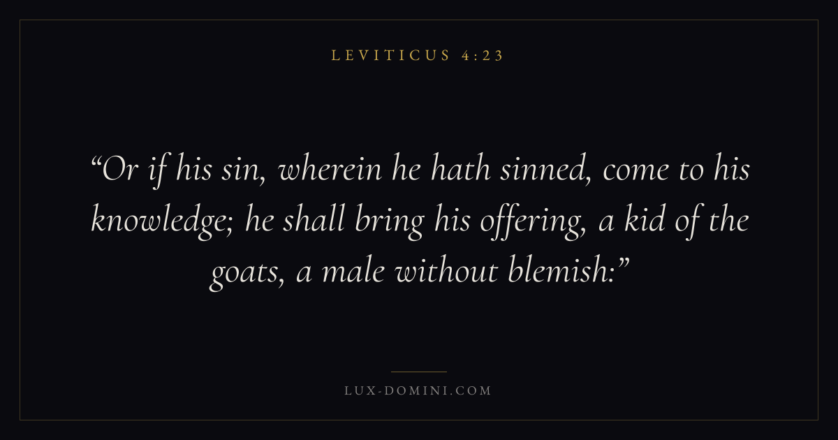 Or if his sin, wherein he hath sinned, come to his knowledge; he shall bring his offering, a kid of the goats, a male without blemish: