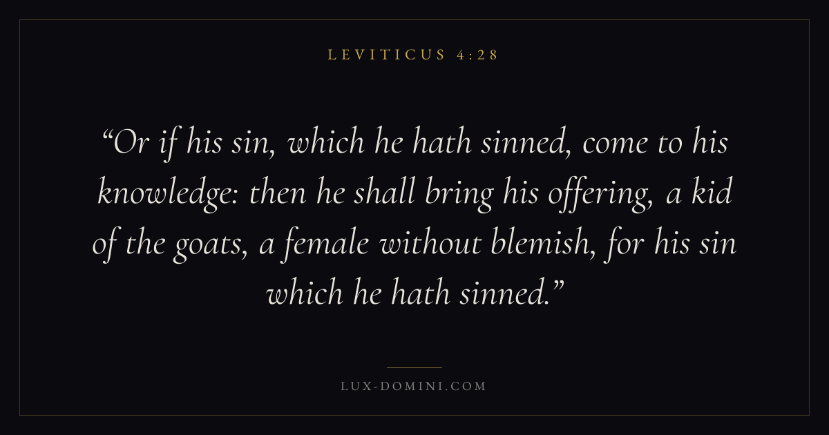 Or if his sin, which he hath sinned, come to his knowledge: then he shall bring his offering, a kid of the goats, a female without blemish, for his sin which he hath sinned.