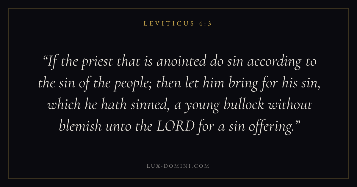 If the priest that is anointed do sin according to the sin of the people; then let him bring for his sin, which he hath sinned, a young bullock without blemish unto the LORD for a sin offering.