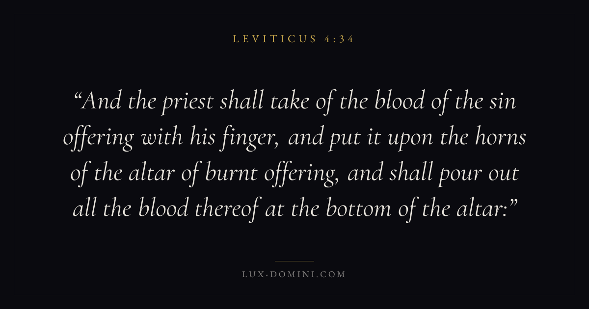 And the priest shall take of the blood of the sin offering with his finger, and put it upon the horns of the altar of burnt offering, and shall pour out all the blood thereof at the bottom of the altar: