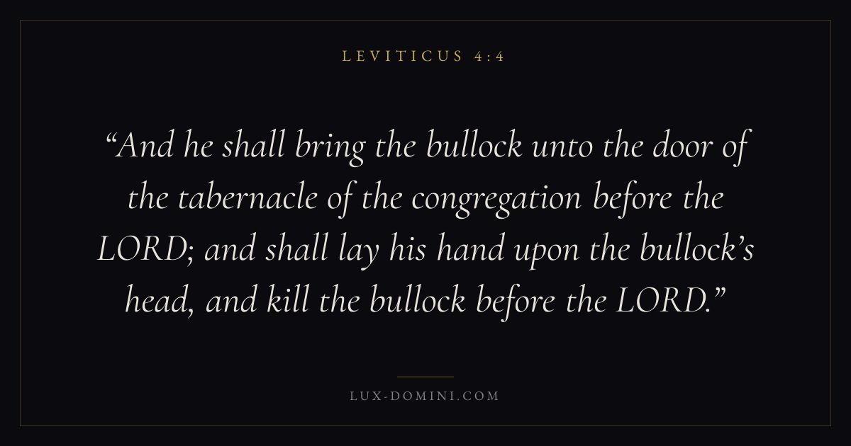 And he shall bring the bullock unto the door of the tabernacle of the congregation before the LORD; and shall lay his hand upon the bullock’s head, and kill the bullock before the LORD.