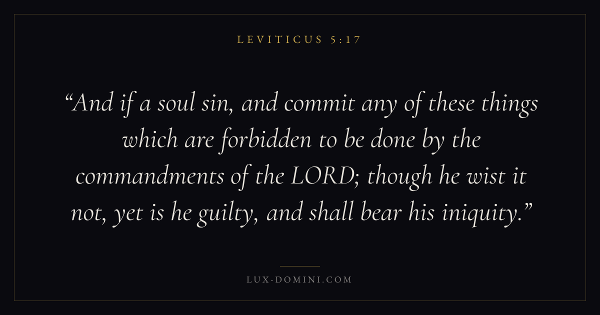 And if a soul sin, and commit any of these things which are forbidden to be done by the commandments of the LORD; though he wist it not, yet is he guilty, and shall bear his iniquity.