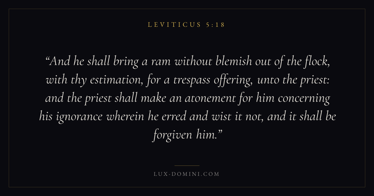 And he shall bring a ram without blemish out of the flock, with thy estimation, for a trespass offering, unto the priest: and the priest shall make an atonement for him concerning his ignorance wherein he erred and wist it not, and it shall be forgiven him.
