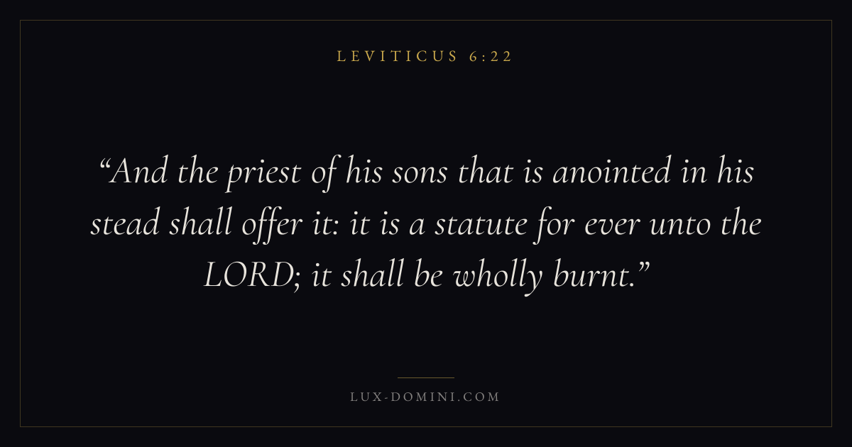 And the priest of his sons that is anointed in his stead shall offer it: it is a statute for ever unto the LORD; it shall be wholly burnt.