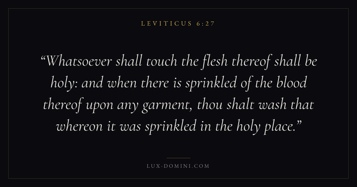 Whatsoever shall touch the flesh thereof shall be holy: and when there is sprinkled of the blood thereof upon any garment, thou shalt wash that whereon it was sprinkled in the holy place.