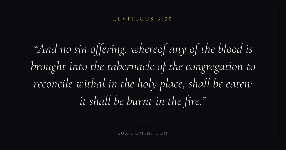 And no sin offering, whereof any of the blood is brought into the tabernacle of the congregation to reconcile withal in the holy place, shall be eaten: it shall be burnt in the fire.