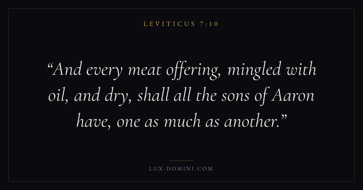 And every meat offering, mingled with oil, and dry, shall all the sons of Aaron have, one as much as another.