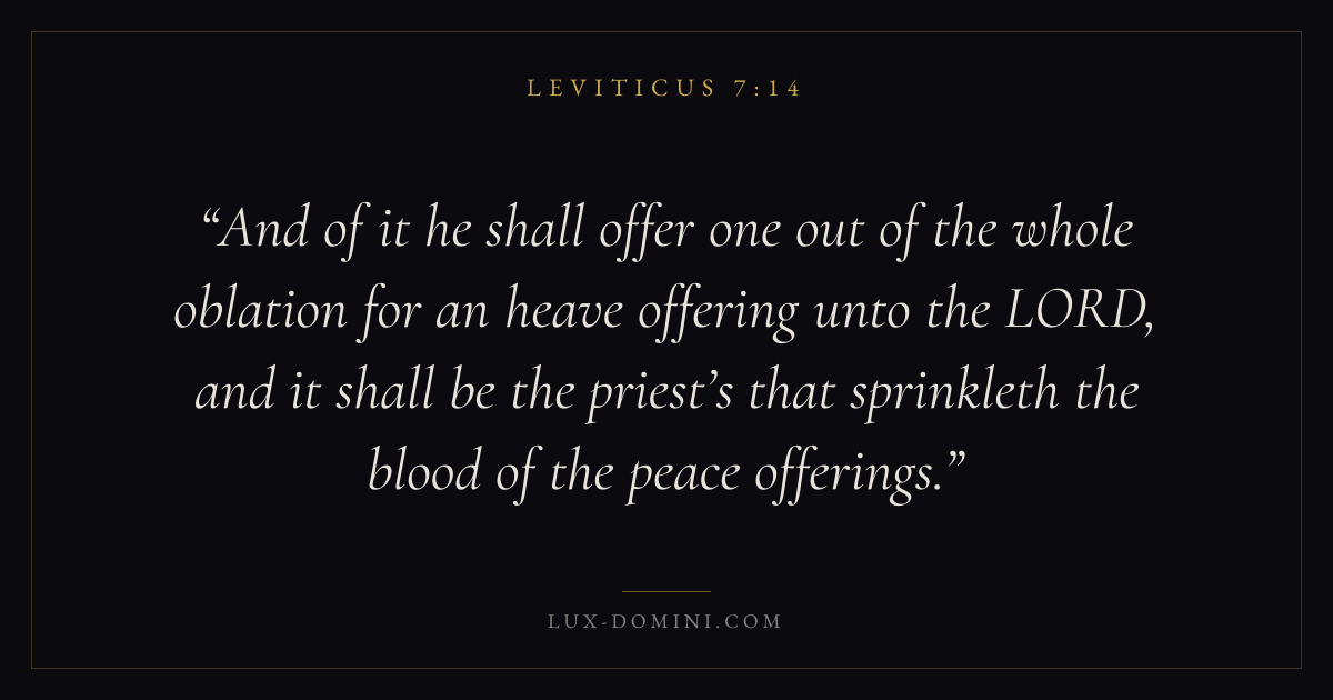 And of it he shall offer one out of the whole oblation for an heave offering unto the LORD, and it shall be the priest’s that sprinkleth the blood of the peace offerings.