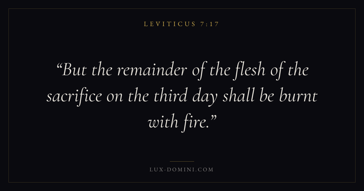 But the remainder of the flesh of the sacrifice on the third day shall be burnt with fire.