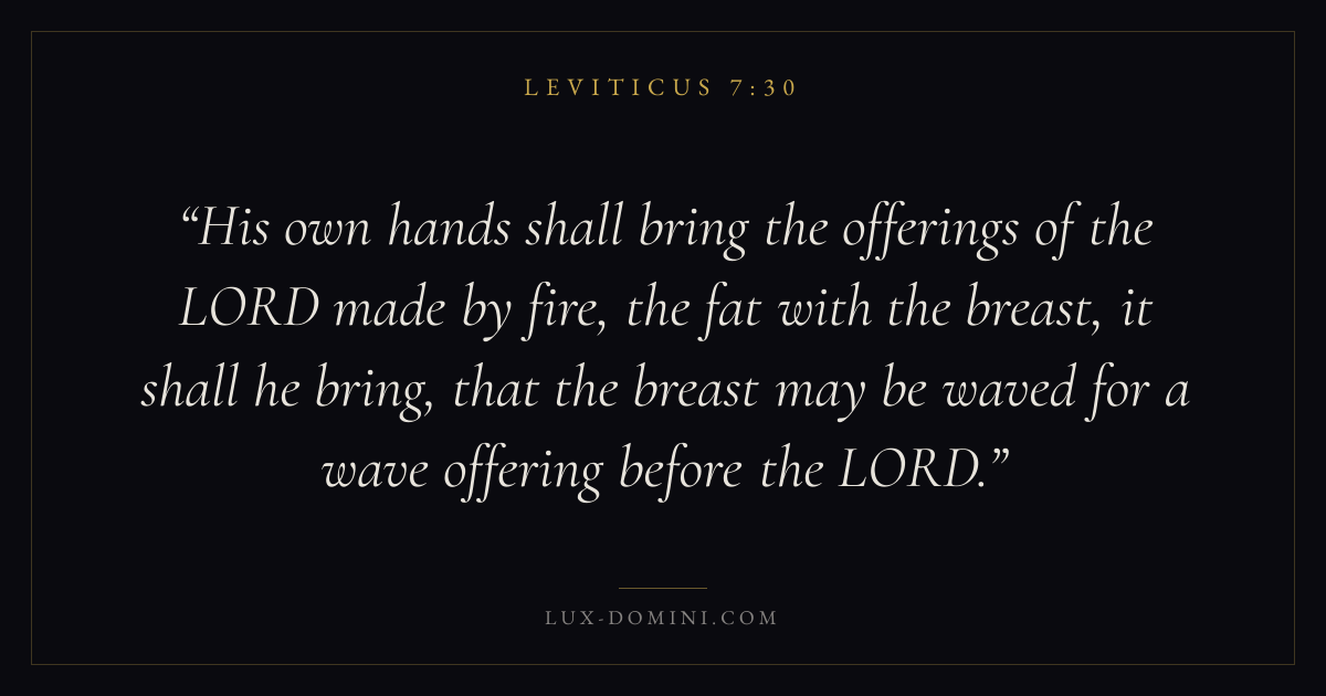 His own hands shall bring the offerings of the LORD made by fire, the fat with the breast, it shall he bring, that the breast may be waved for a wave offering before the LORD.