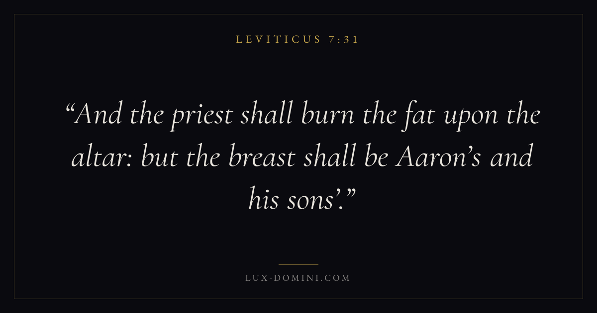 And the priest shall burn the fat upon the altar: but the breast shall be Aaron’s and his sons’.