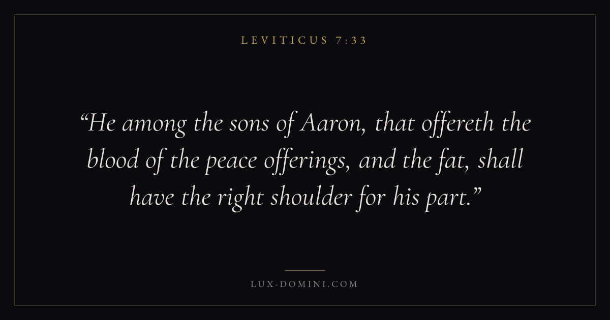 He among the sons of Aaron, that offereth the blood of the peace offerings, and the fat, shall have the right shoulder for his part.