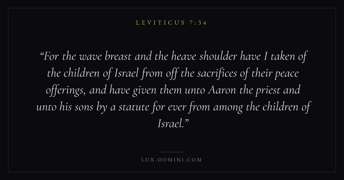 For the wave breast and the heave shoulder have I taken of the children of Israel from off the sacrifices of their peace offerings, and have given them unto Aaron the priest and unto his sons by a statute for ever from among the children of Israel.