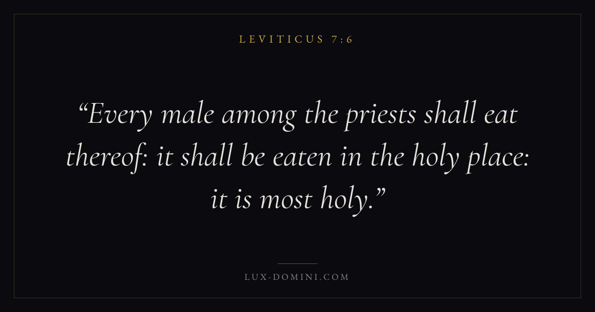 Every male among the priests shall eat thereof: it shall be eaten in the holy place: it is most holy.