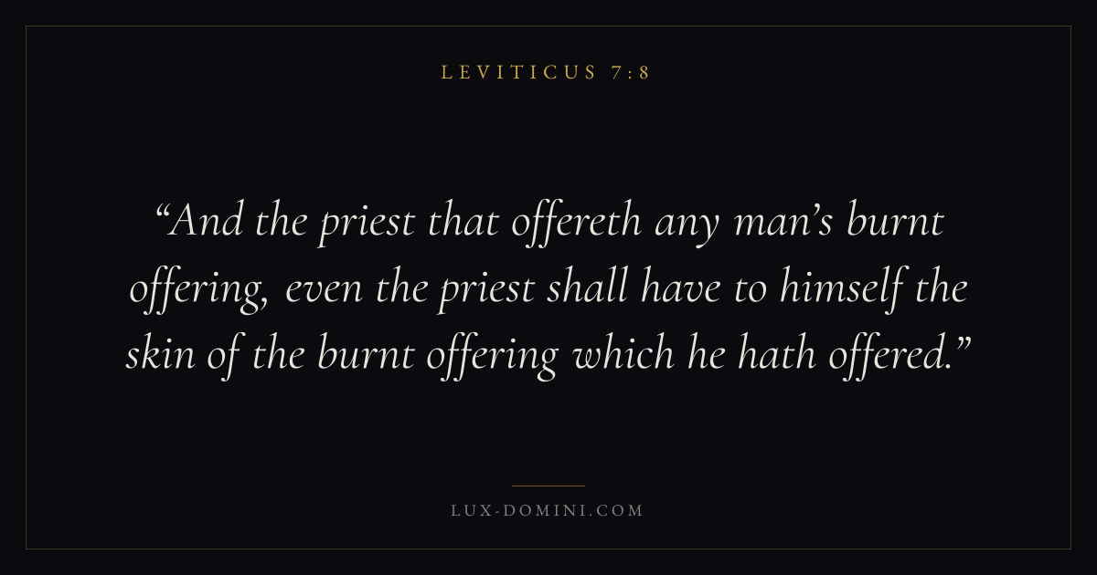 And the priest that offereth any man’s burnt offering, even the priest shall have to himself the skin of the burnt offering which he hath offered.