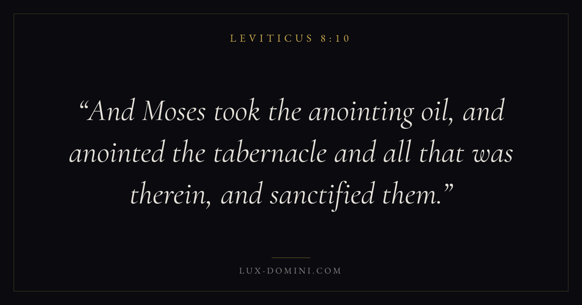 And Moses took the anointing oil, and anointed the tabernacle and all that was therein, and sanctified them.