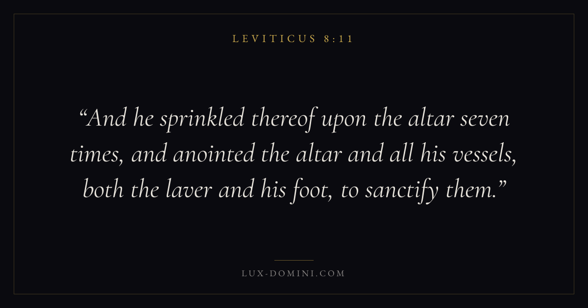 And he sprinkled thereof upon the altar seven times, and anointed the altar and all his vessels, both the laver and his foot, to sanctify them.