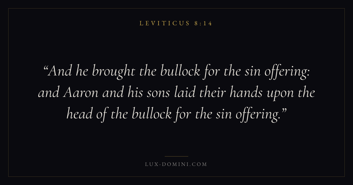 And he brought the bullock for the sin offering: and Aaron and his sons laid their hands upon the head of the bullock for the sin offering.