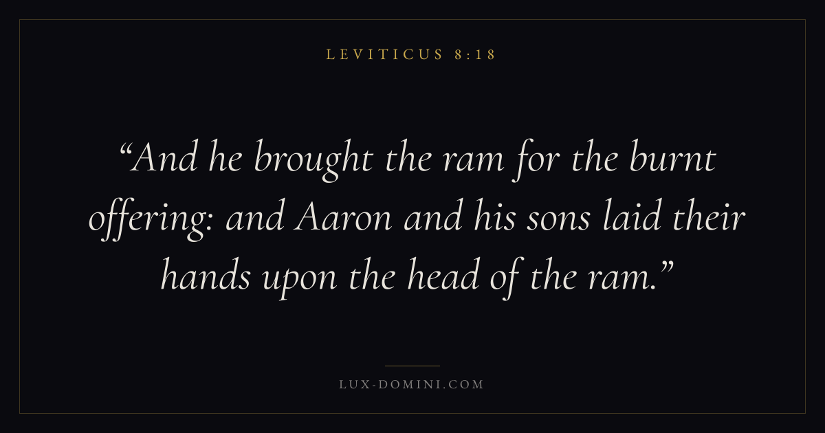 And he brought the ram for the burnt offering: and Aaron and his sons laid their hands upon the head of the ram.