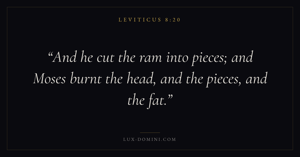And he cut the ram into pieces; and Moses burnt the head, and the pieces, and the fat.