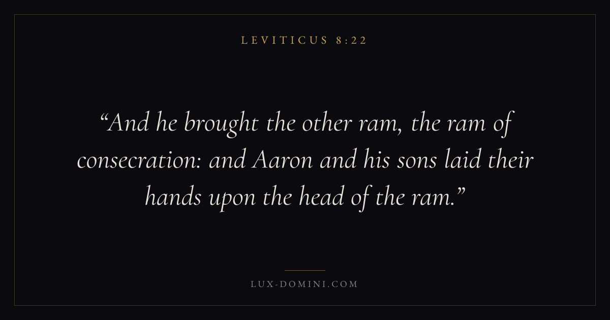 And he brought the other ram, the ram of consecration: and Aaron and his sons laid their hands upon the head of the ram.