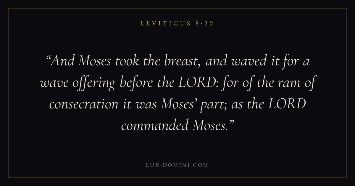 And Moses took the breast, and waved it for a wave offering before the LORD: for of the ram of consecration it was Moses’ part; as the LORD commanded Moses.