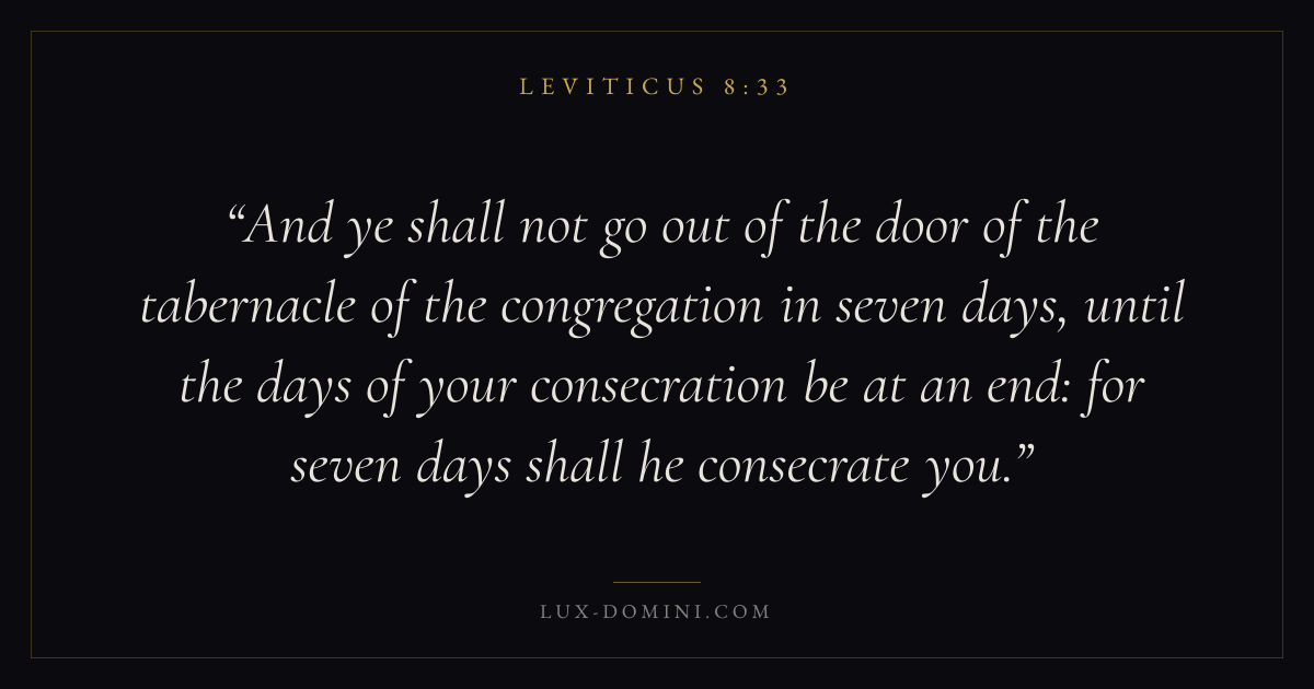 And ye shall not go out of the door of the tabernacle of the congregation in seven days, until the days of your consecration be at an end: for seven days shall he consecrate you.