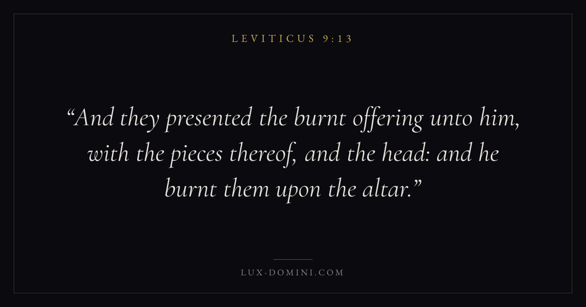 And they presented the burnt offering unto him, with the pieces thereof, and the head: and he burnt them upon the altar.