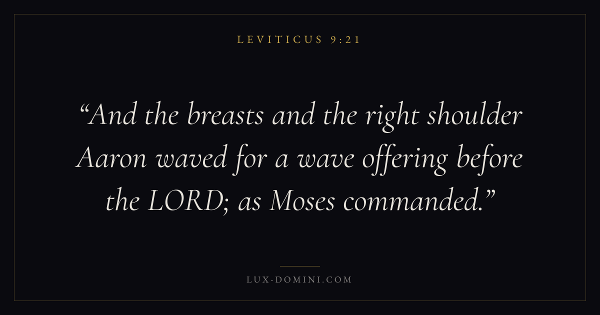 And the breasts and the right shoulder Aaron waved for a wave offering before the LORD; as Moses commanded.
