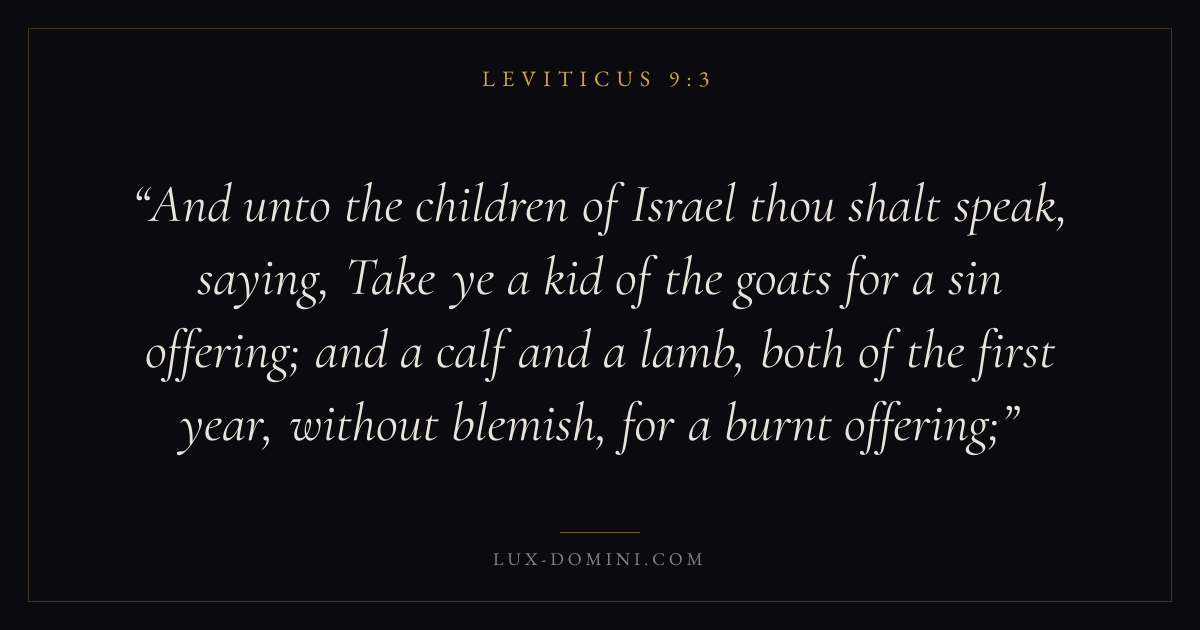 And unto the children of Israel thou shalt speak, saying, Take ye a kid of the goats for a sin offering; and a calf and a lamb, both of the first year, without blemish, for a burnt offering;
