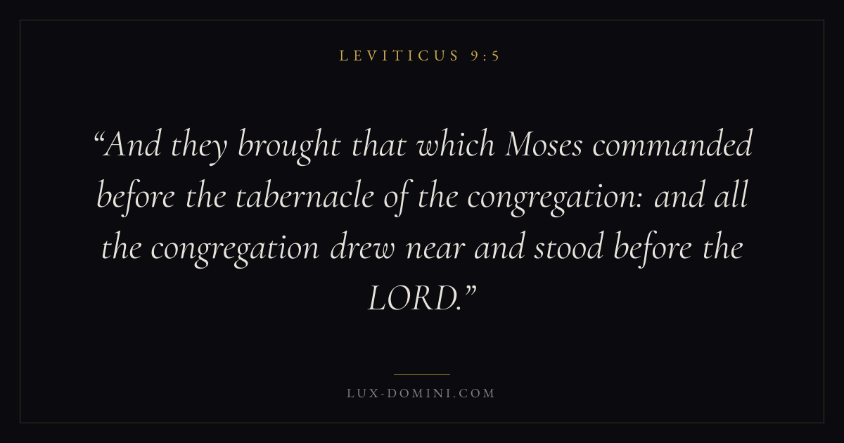 And they brought that which Moses commanded before the tabernacle of the congregation: and all the congregation drew near and stood before the LORD.