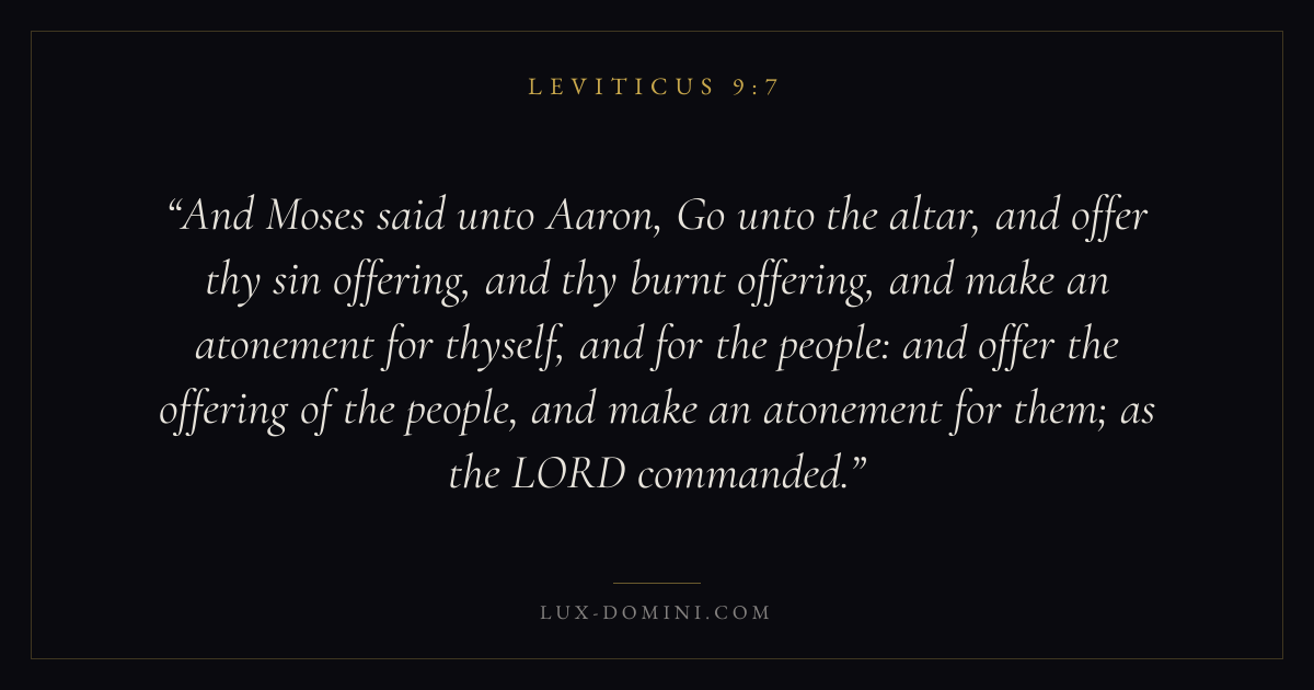 And Moses said unto Aaron, Go unto the altar, and offer thy sin offering, and thy burnt offering, and make an atonement for thyself, and for the people: and offer the offering of the people, and make an atonement for them; as the LORD commanded.