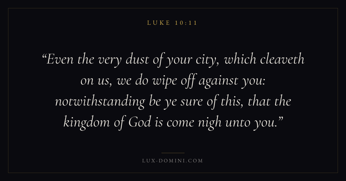 Even the very dust of your city, which cleaveth on us, we do wipe off against you: notwithstanding be ye sure of this, that the kingdom of God is come nigh unto you.