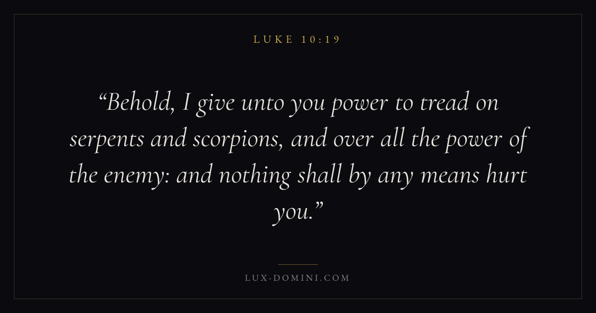 Behold, I give unto you power to tread on serpents and scorpions, and over all the power of the enemy: and nothing shall by any means hurt you.