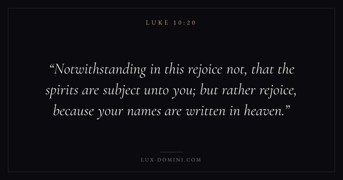 Notwithstanding in this rejoice not, that the spirits are subject unto you; but rather rejoice, because your names are written in heaven.