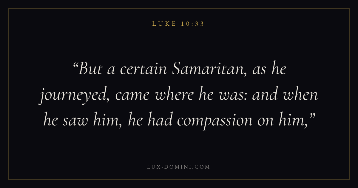 But a certain Samaritan, as he journeyed, came where he was: and when he saw him, he had compassion on him,