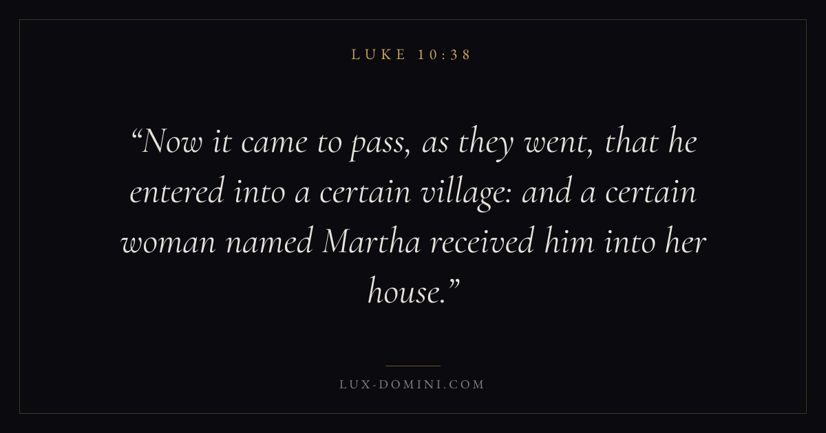 Now it came to pass, as they went, that he entered into a certain village: and a certain woman named Martha received him into her house.
