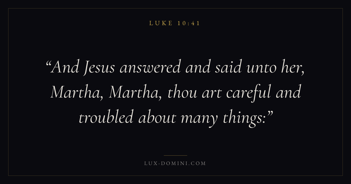 And Jesus answered and said unto her, Martha, Martha, thou art careful and troubled about many things: