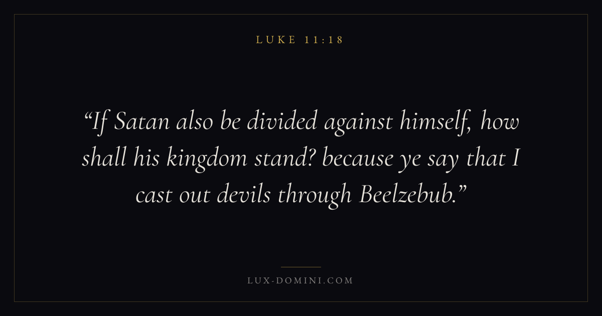 If Satan also be divided against himself, how shall his kingdom stand? because ye say that I cast out devils through Beelzebub.