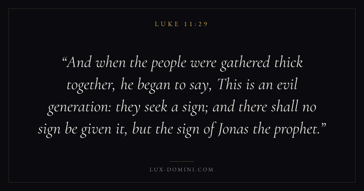 And when the people were gathered thick together, he began to say, This is an evil generation: they seek a sign; and there shall no sign be given it, but the sign of Jonas the prophet.