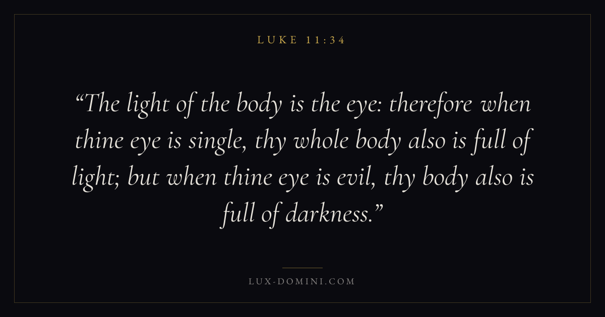 The light of the body is the eye: therefore when thine eye is single, thy whole body also is full of light; but when thine eye is evil, thy body also is full of darkness.