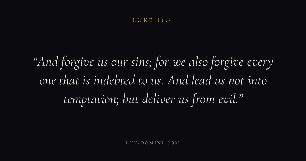 And forgive us our sins; for we also forgive every one that is indebted to us. And lead us not into temptation; but deliver us from evil.