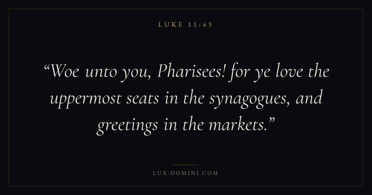 Woe unto you, Pharisees! for ye love the uppermost seats in the synagogues, and greetings in the markets.