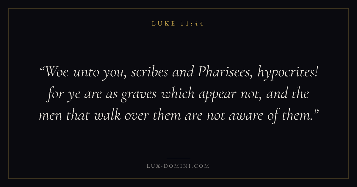 Woe unto you, scribes and Pharisees, hypocrites! for ye are as graves which appear not, and the men that walk over them are not aware of them.