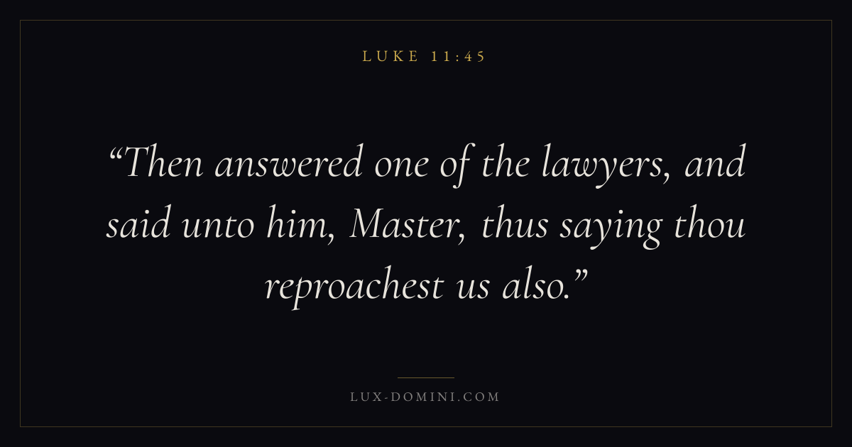 Then answered one of the lawyers, and said unto him, Master, thus saying thou reproachest us also.