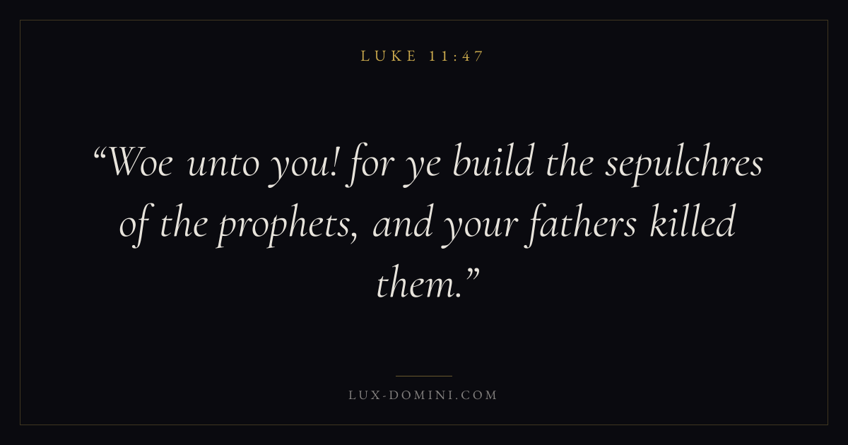 Woe unto you! for ye build the sepulchres of the prophets, and your fathers killed them.