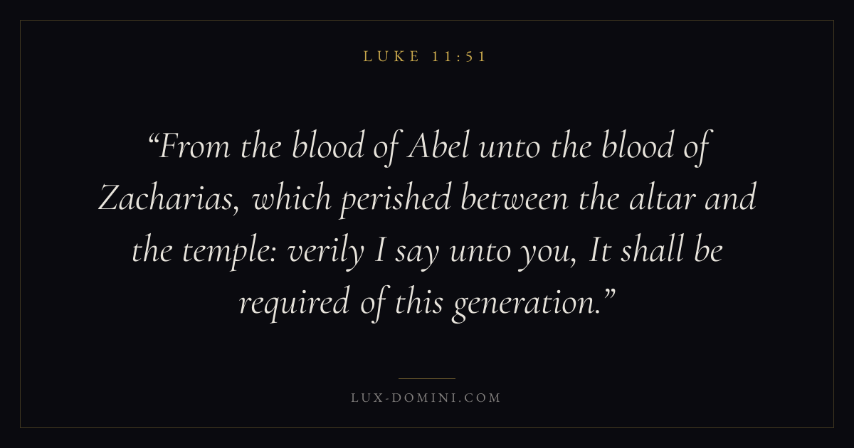 From the blood of Abel unto the blood of Zacharias, which perished between the altar and the temple: verily I say unto you, It shall be required of this generation.