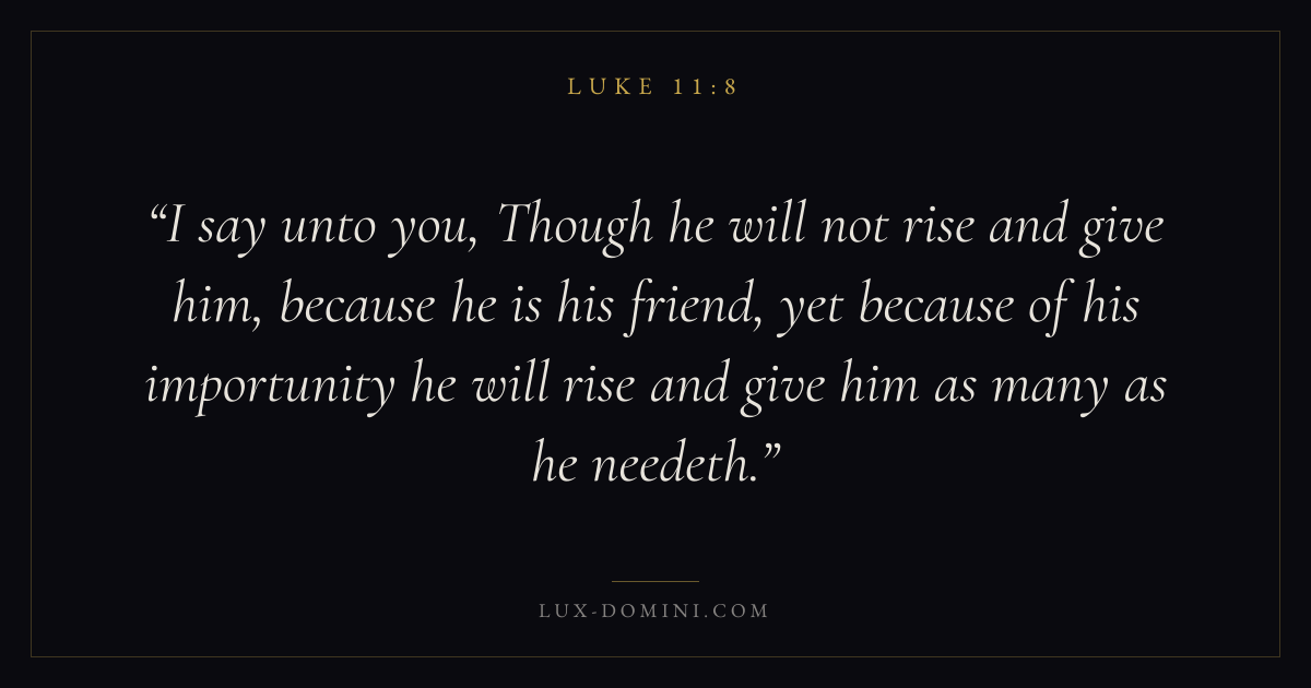 I say unto you, Though he will not rise and give him, because he is his friend, yet because of his importunity he will rise and give him as many as he needeth.