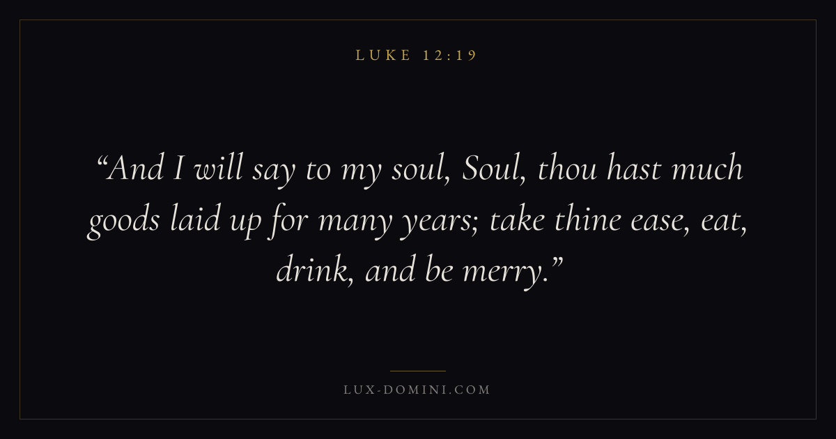 And I will say to my soul, Soul, thou hast much goods laid up for many years; take thine ease, eat, drink, and be merry.
